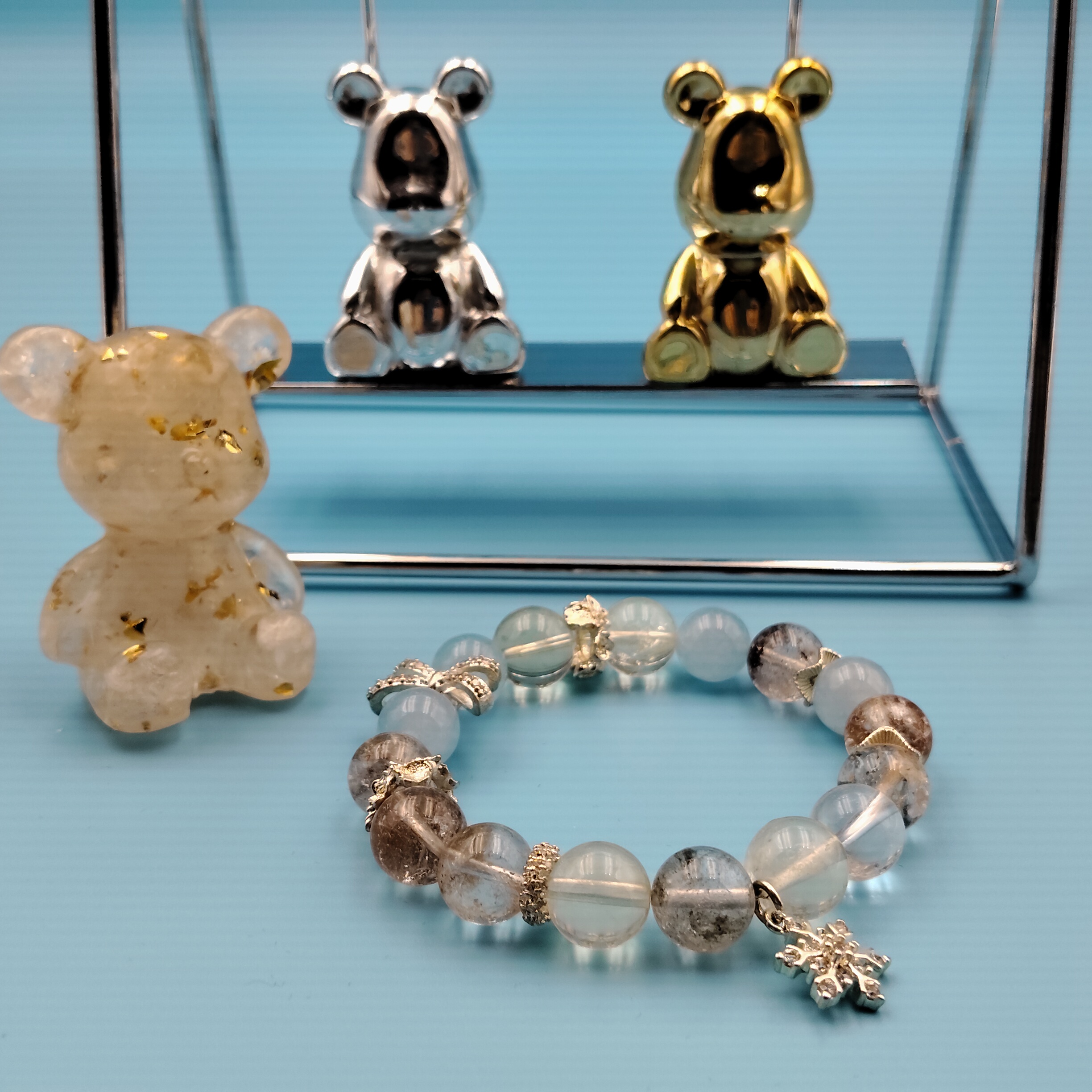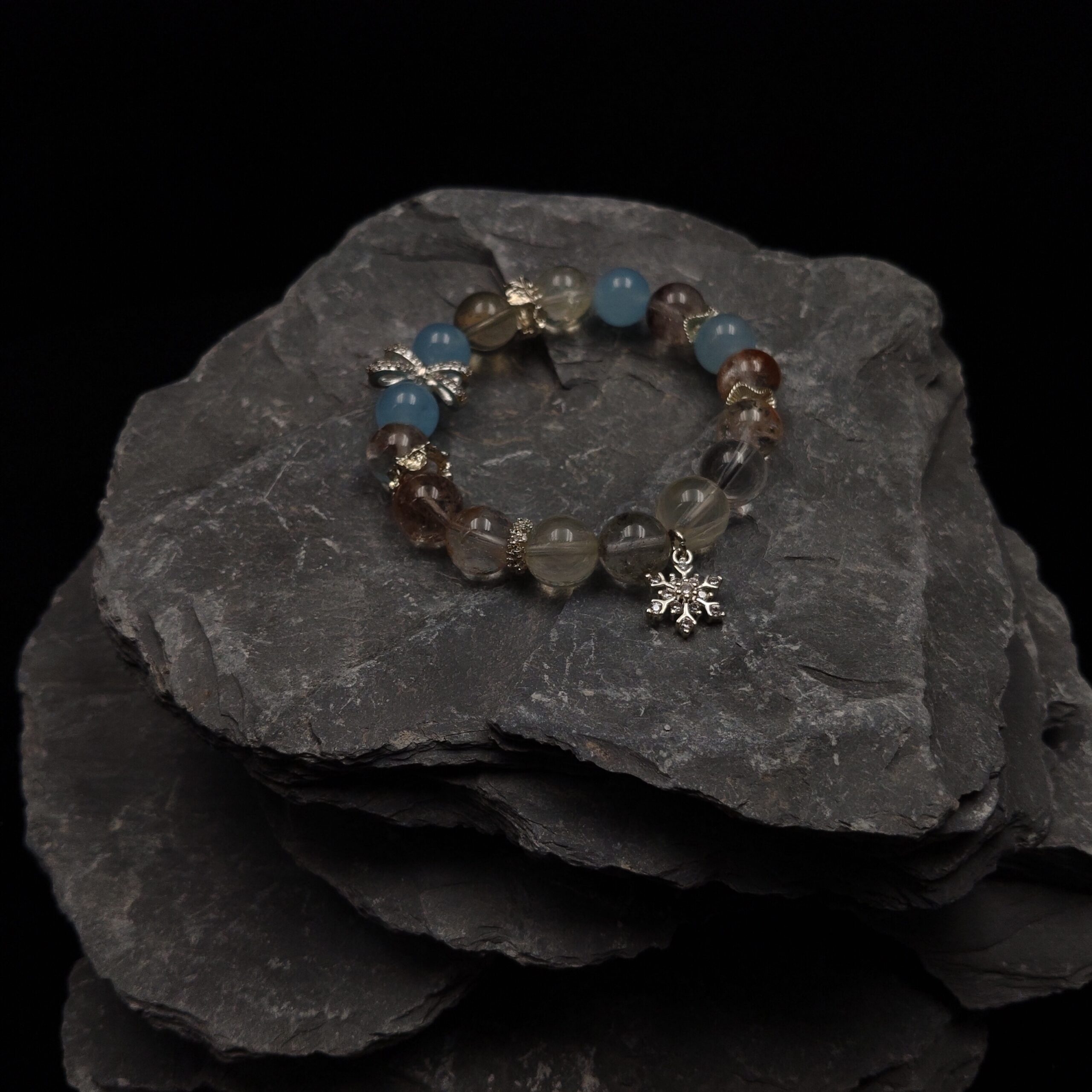 10mm Green Phantom Quartz, Four Seasons Phantom Quartz, Lemon Yellow, White Crystal, Blue Chalcedony, 14K Gold Plated Accessories, 33 grams, 16cm-17cm Inner Diameter