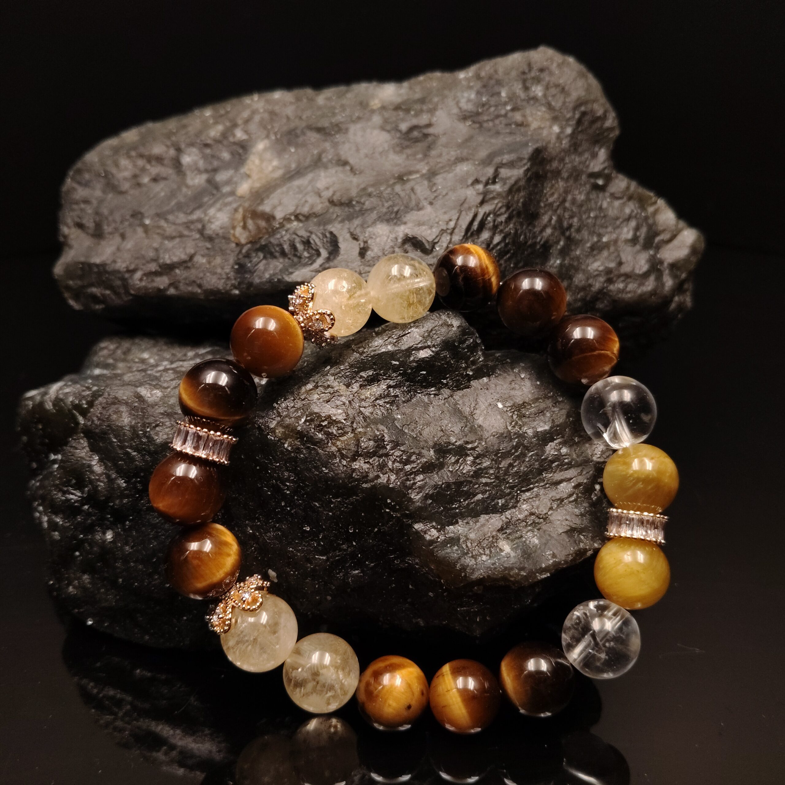 10mm Yellow Asai Yellow Rubber Flower Tiger Eye Stone, 29 grams, 16cm-17cm in diameter.