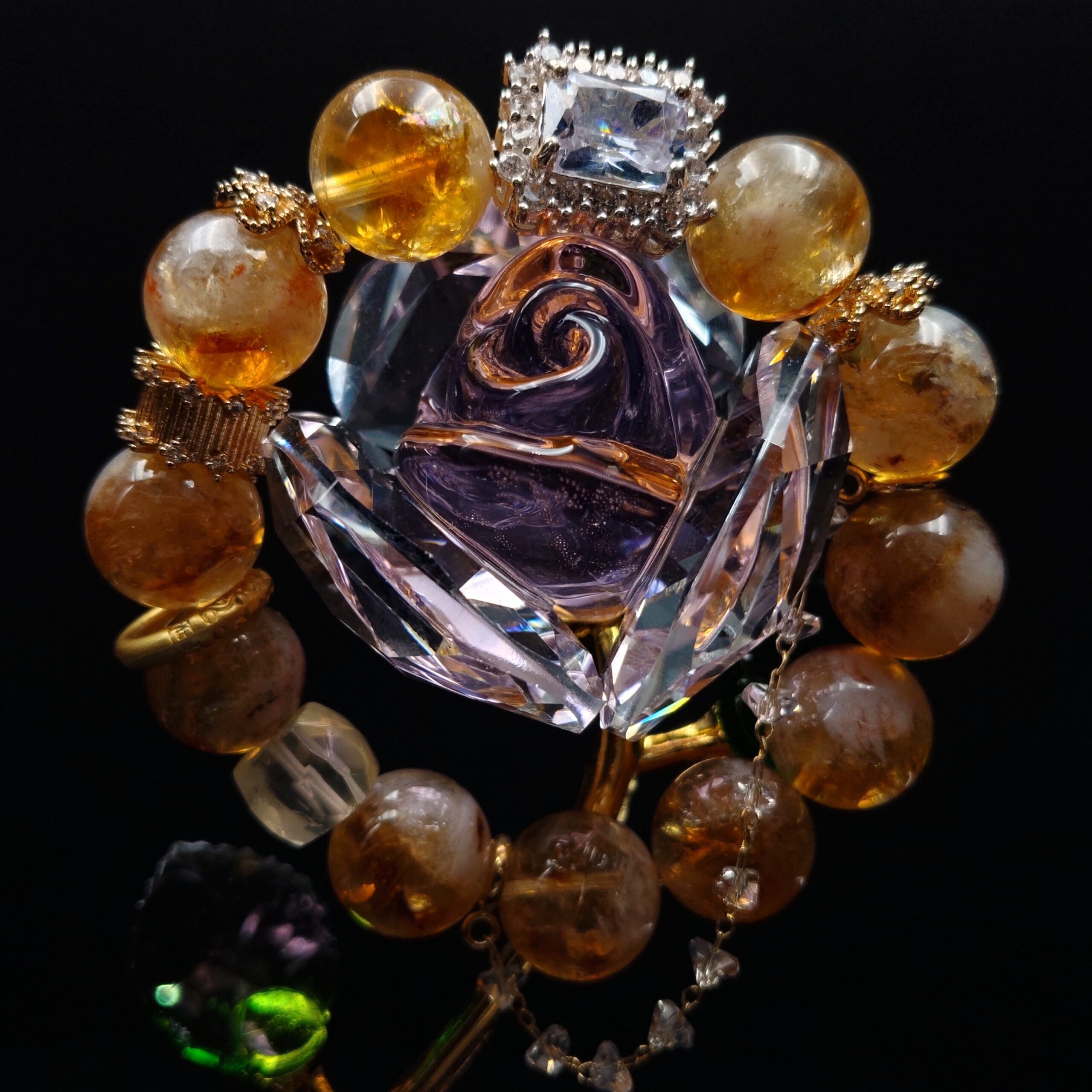13mm Yellow Crystal, Lemon Yellow, 14K Gold Plated Accessories, 43g, Inner Ring 16cm-17cm