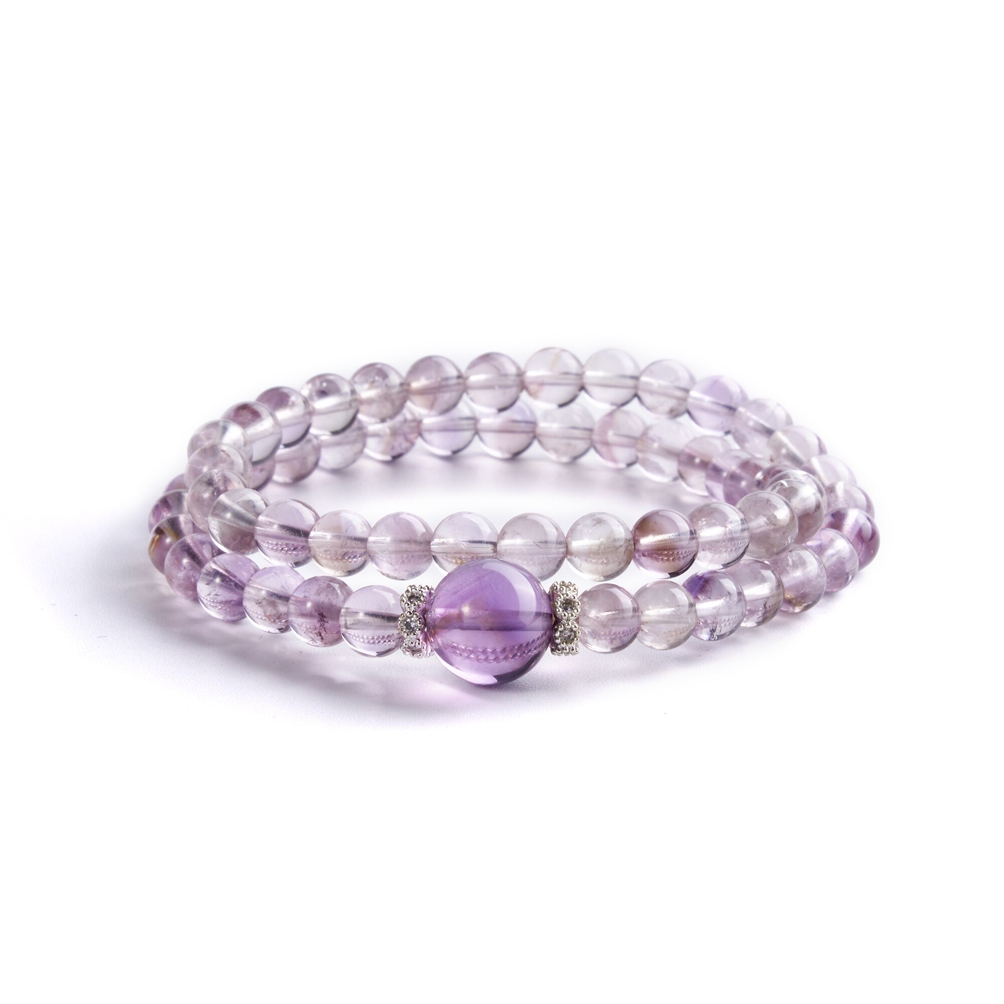 Crafted with Brazilian Light Purple Crystal — 8mm round beads are smooth and translucent, like the soft glow of youth; the 12mm top bead is plump and prominent, symbolizing the pivotal moment of growth. It is paired with 14K gold-plated zircon accessories, where the refraction of tiny starlike glimmers lights up the brilliant memories of the coming-of-age ceremony. Weighing 38g, it fits comfortably around the wrist: it retains the sense of presence as a “youth memento” while avoiding the heaviness of long-term wear, making it easy to handle for daily activities.