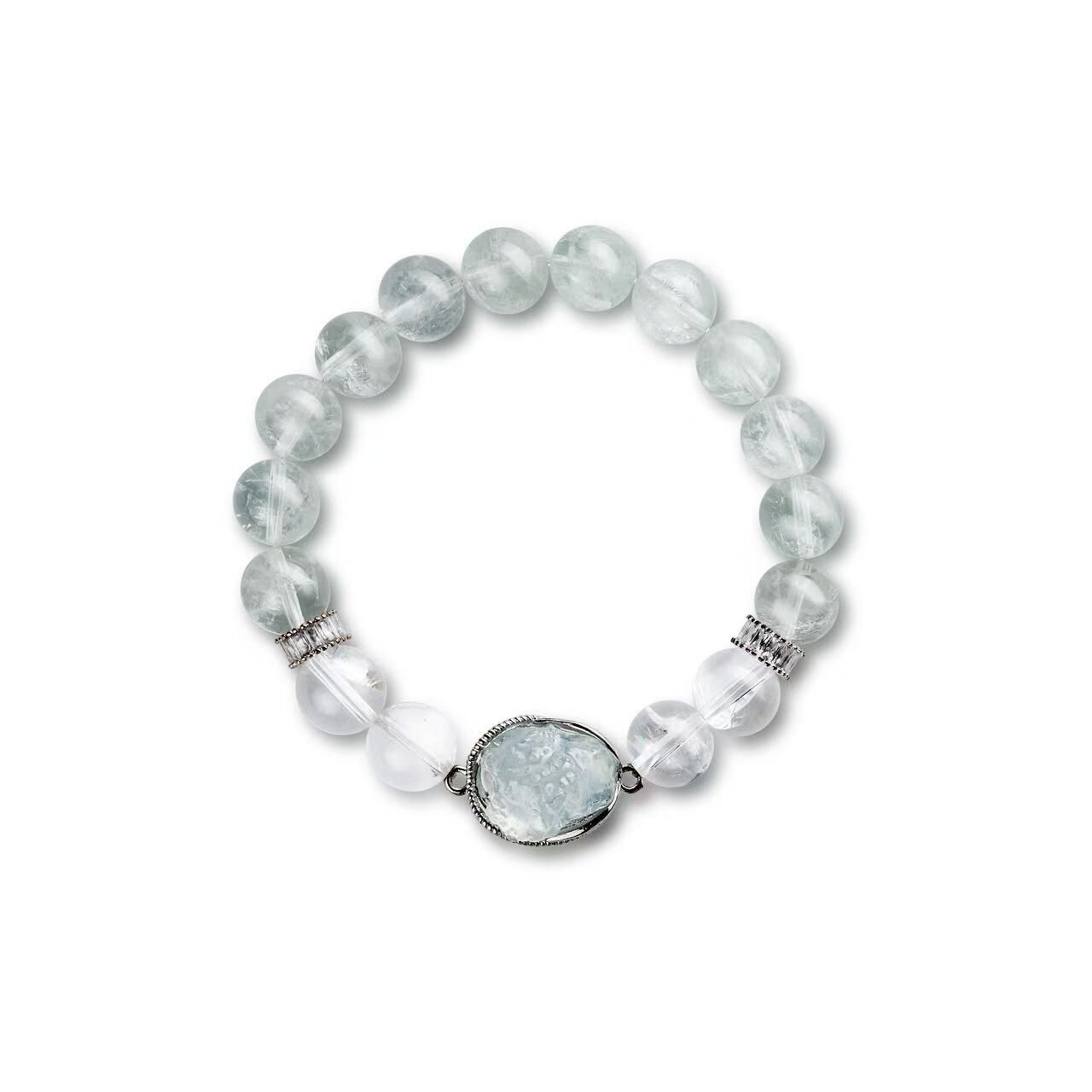 Imagine standing by the sea, where the gentle breeze caresses your skin and the waves lap softly against the shore. This Green Pearl Crystal Bracelet captures the very essence of this tranquility and strength, condensing it into a touch of green on your wrist.