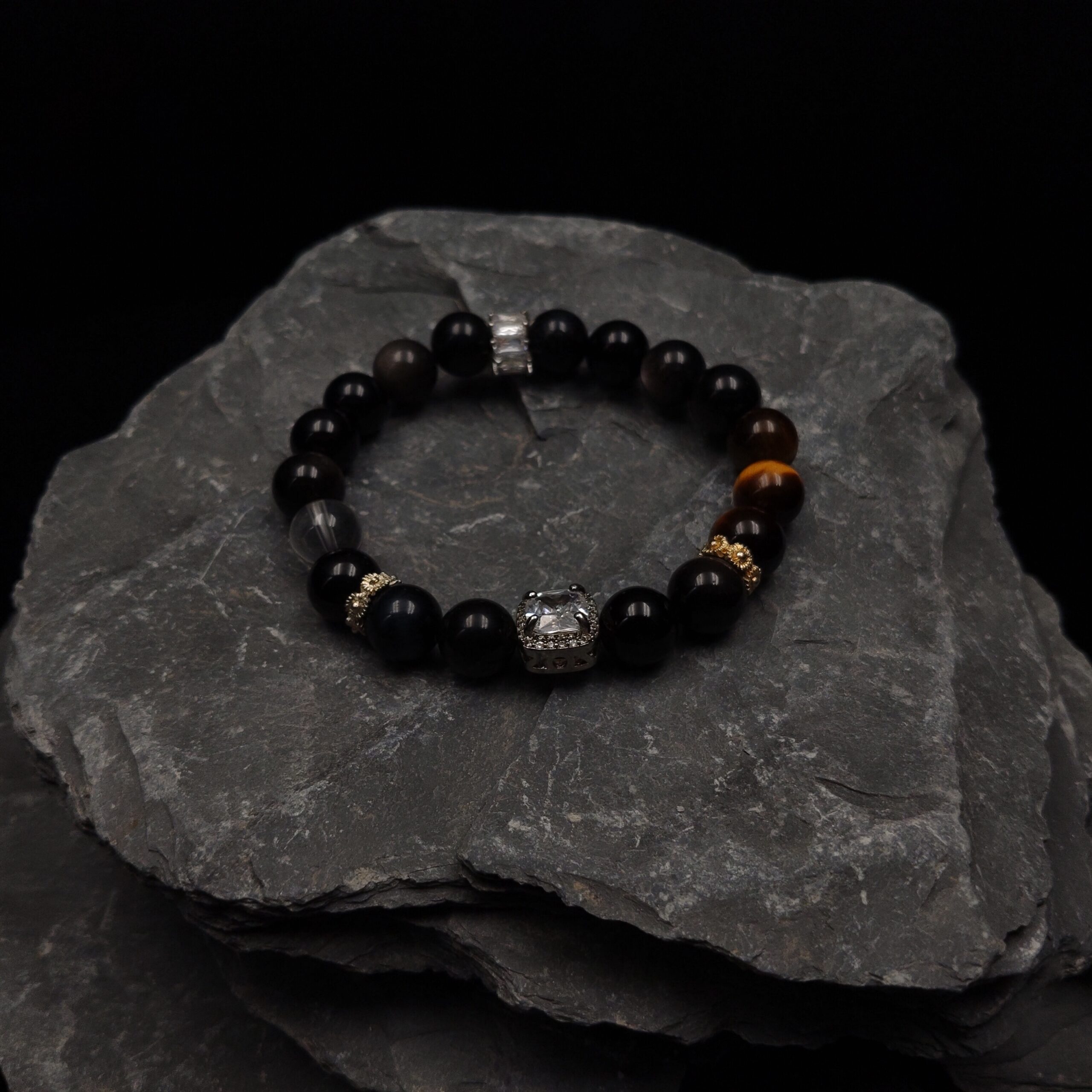 • Premium Materials: 10mm natural obsidian + tiger’s eye + clear quartz. 31g of solid texture, brimming with concentrated energy.